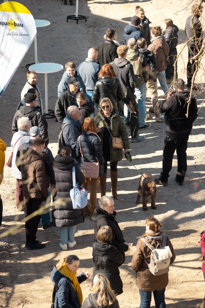 Für die feierliche Rede beim Richtfest stieg spar+bau-Vorstand Rainer Detjen auf das Gerüst des Rohbaus und bedankte sich herzlich bei allen Beteiligten. Detjen lobte den reibungslosen Baufortschritt und den gelungenen Entwurf: „Grundlegende Idee des Gebäudes ist die Laubengangerschließung, sodass dort Kommunikationsflächen entstehen. Denn das ist es ja, was eine Genossenschaft ausmacht: das Gemeinsame, das Miteinander, das Zueinanderfinden.“