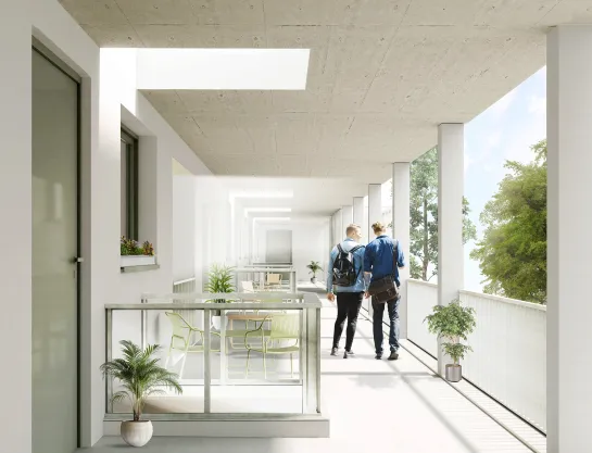 Im Oktober 2023 haben wir unseren Neubau in der Springer Straße 10 A mit elf Wohnungen fertiggestellt. Bis Herbst 2025 erweitern wir das Wohngebiet um ein weiteres Mehrfamilienhaus: In der Springer Straße 6 entstehen 28 neue Mietwohnungen sowie eine Gewerbeeinheit. Drei der Wohnungen sind rollstuhlgerecht, sechs sind öffentlich gefördert und werden mit B-Schein vermietet. Alle Wohnungen verfügen über einen Balkon oder eine Terrasse. Ein Aufzug und eine Tiefgarage runden das barrierefreie Wohnen ab, bei dem der Fokus auf bezahlbaren Mieten liegt. In die Gewerbeeinheit zieht die Sterbekasse, die hier früher bereits ihren Sitz hatte.